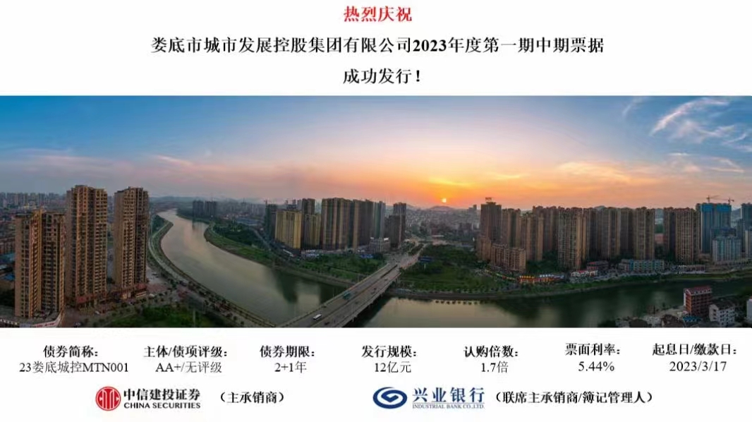 3月17日,市城發(fā)控股集團2023年第一期中期票據(jù)成功發(fā)行,規(guī)模12億元,發(fā)行期限2+1年,票面利率5.44%。